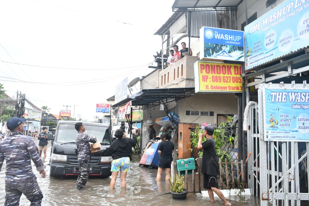 Sejak subuh, prajurit di bawah komando Komandan Lanal Denpasar, Kolonel Laut (P) Cokorda G.P. Pemayun, S.H., M.Sc., M.Tr. Hanla., bergerak ke beberapa lokasi terdampak banjir, termasuk kawasan Pasar Badung, bantaran Sungai Badung, serta ruas jalan utama yang tergenang air.