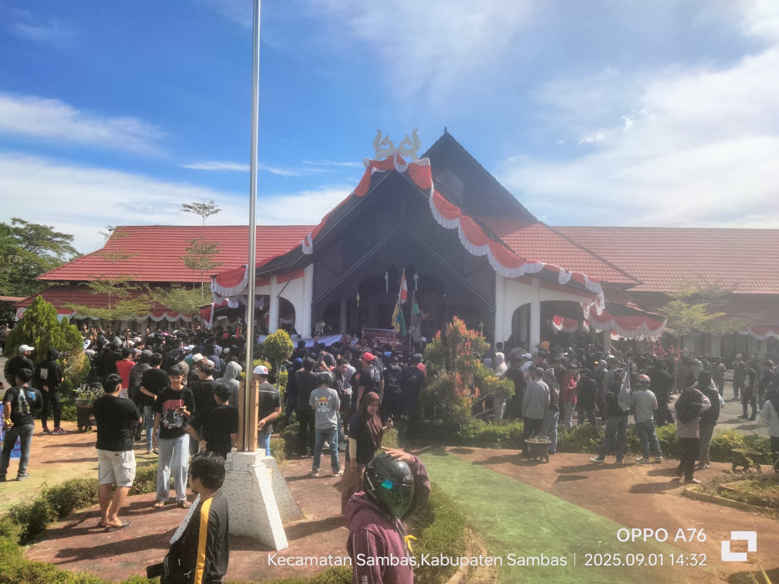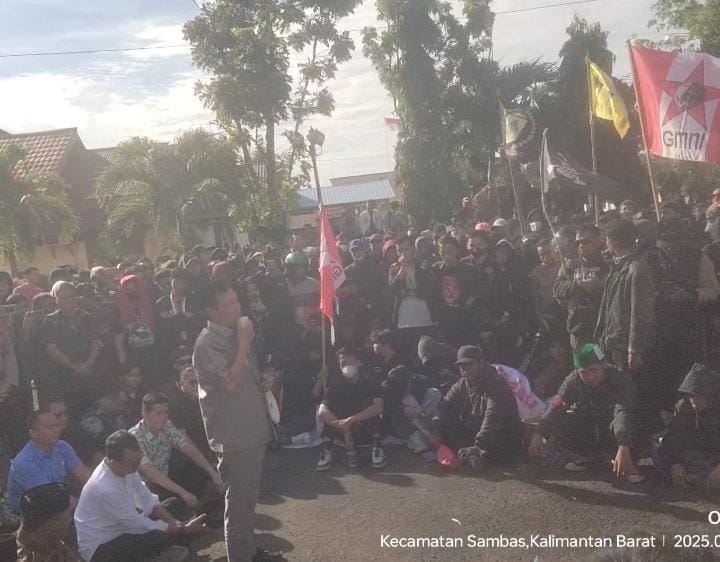 Rakyatmerdekanews.co.id. Sambas Kalbar – Aksi demo masyarakat Kabupaten Sambas ke kantor DPRD berlansung damai, dengan menyampaikan orasi tuntutan diantaranya mengenai kenaikan pajak, keruhnya air sungai Sambas dikarenakan adanya PETI, menyangkut guru honorer, menyangkut pengelolaan keuangan Daerah dan lainnya; dengan membawa berbagai bendera dan pemplet yang bertuliskan “Suara Rakyat suara Tuhan”, dan lainnya; Kehadiran aksi demo ini bukan saja dari unsur mahasiswa, namun dari berbagai unsur elemen masyarakat; sebagaimana disampaikan salah seorang pelaksana koordinator demo tersebut.