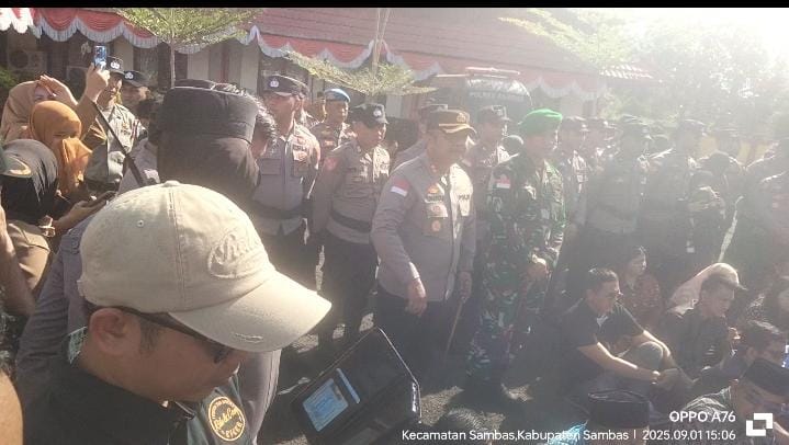 Pimpinan dan anggota DPRD Sambas, asisten II, kepala-kepala OPD yang didampingi pengamanan dari Kapolres dan Dandim 1208/sbs bersama jajarannya juga hadir dalam mendengarkan penyampai orasi oleh pengunjuk rasa tersebut.