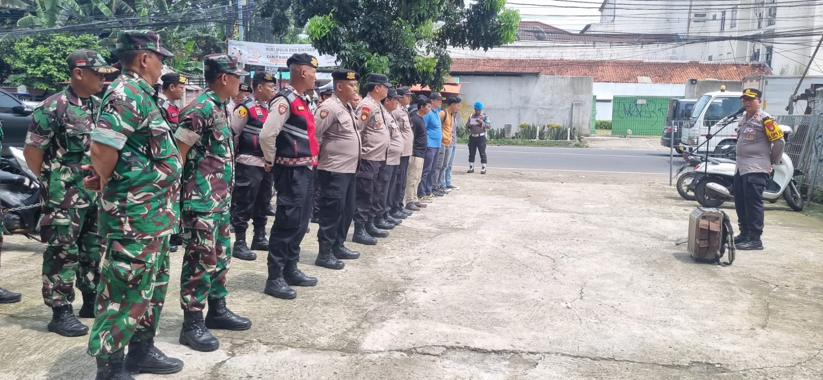 Rakyatmerdekanews.co.id, Ciputat, 29 Oktober 2025 — Kapolsek Ciputat Timur Kompol Bambang Askar Sodiq, S.H., M.H. bersama Komandan Koramil Ciputat memimpin langsung apel kesiapan pengamanan terkait rencana aksi dari Lembaga Swadaya Masyarakat Harapan Rakyat Indonesia Maju (LSM Harimau) di depan kantor Mandiri Utama Finance yang berlokasi di Jalan Aria Putra, Kelurahan Serua Indah, Kecamatan Ciputat, Tangerang Selatan, pada Selasa (29/10/2025).