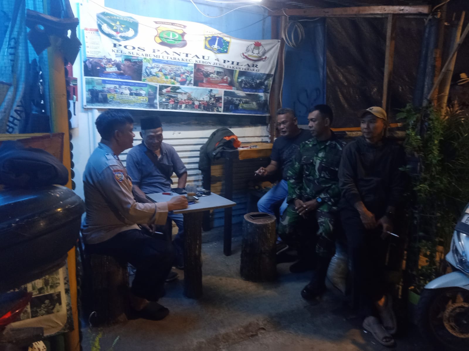 Rakyatmerdekanews.co.id, Jakarta – Sekitar pukul 22.05 wib, di Pos Siskamling Jl. Berdikari Rt 01/02 Kelurahan Sukabumi Utara, Kecamatan Kebon Jeruk, Jakarta Barat, Babinsa Kelurahan Sukabumi Utara Sertu Hadi Ermanto dan Bimas Aiptu Sahari menyambangi warga yang sedang Siskamling/Pam Swakarsa malam hari ini bersama Bpk H. Utbah (Ketua Rt 01/02), Bpk Sarifudin dan Bpk Ramdani (warga) Kelurahan Sukabumi utara., Selasa (18/11/2025).