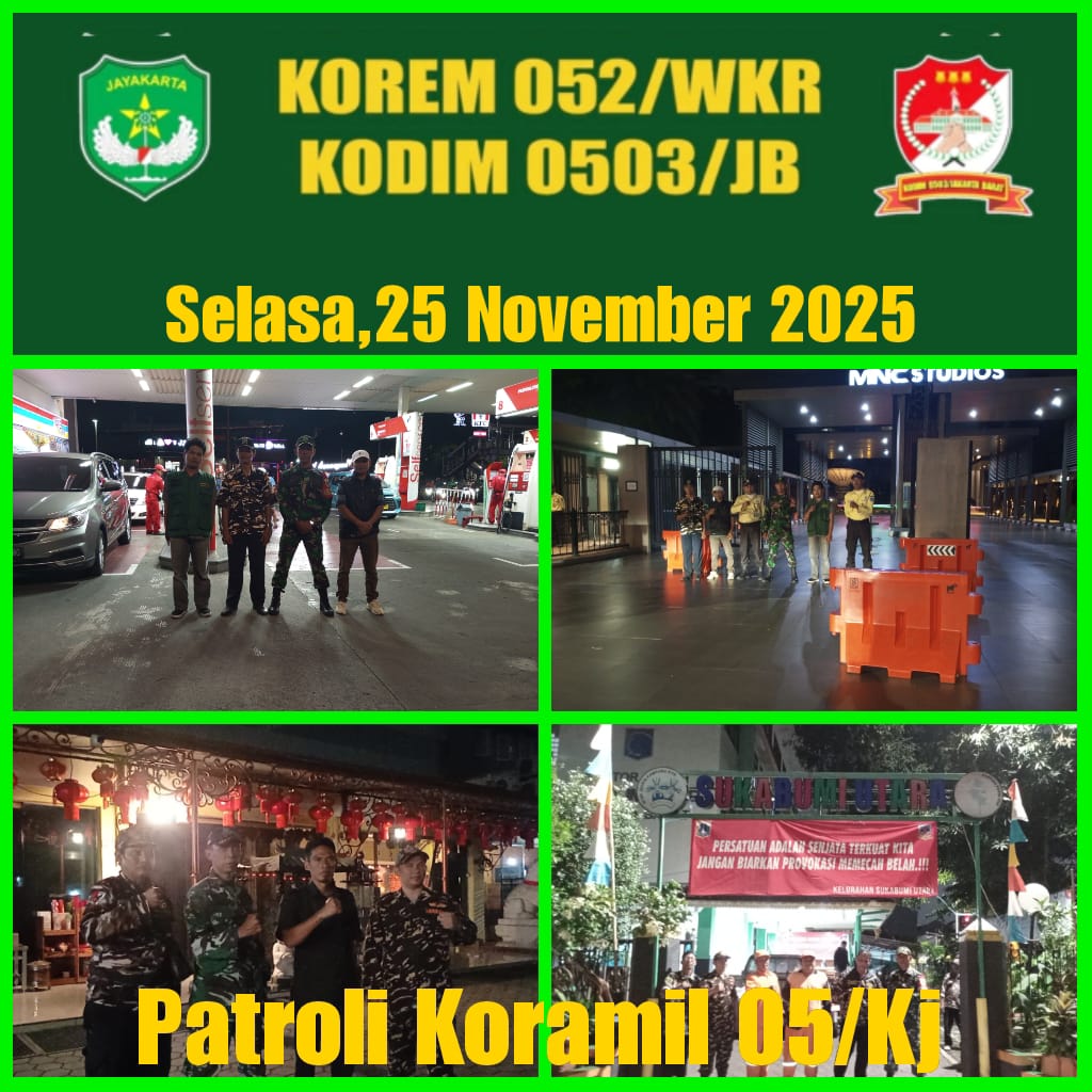 Diawal dengan apel dihalaman Koramil 05 KJ, Babinsa Kelurahan Sukabumi Utara Sertu Hadi Ermanto memberikan arahan kepada personil yang akan melakukan kegiatan patroli keliling., Selasa (25/11/2025).