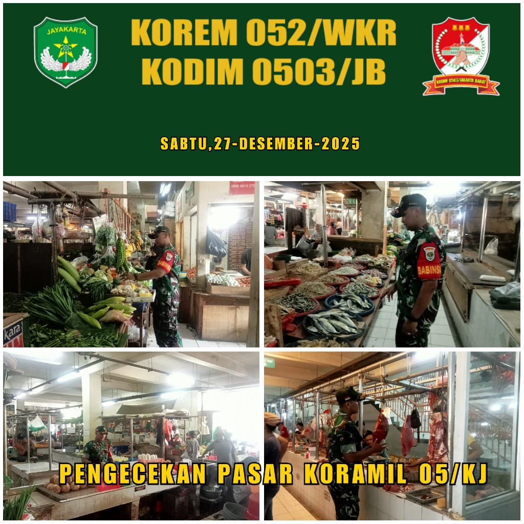 Rakyatmerdekanews.co.id, Jakarta – Dalam rangka menjaga stabilitas harga sembako dan komoditi Babinsa Koramil 05 KJ melakukan pengecekan kepasar untuk mengetahui perkembangan harga sembako dan komoditi menjelang tahun baru 2025-2026.