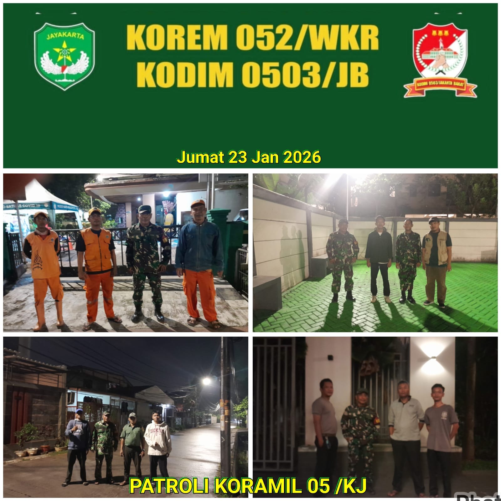 Rakyatmerdekanews.co.id, Jakarta – Dalam rangka menjaga keamanan lingkungan teritorial di Kebon Jeruk, Jakarta, jajaran Babinsa Koramil 05 KJ rutin melakukan patroli di malam hari bersama warga., Jumat, (23/01/2026).