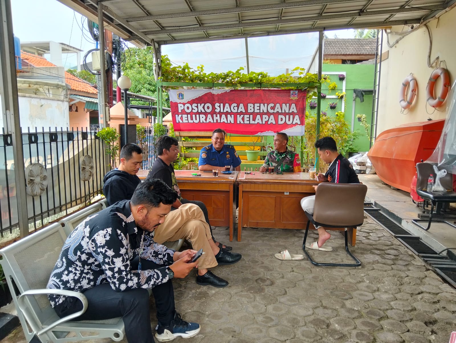 Komsos tersebut bertempat diwilayah Kelurahan Kelapa Dua jalan Arteri Kelapa Dua RT.004/05 Kebon Jeruk Jakarta Barat, bertemu dengan pak Simon (damkar) beserta 5 orang warga setempat.