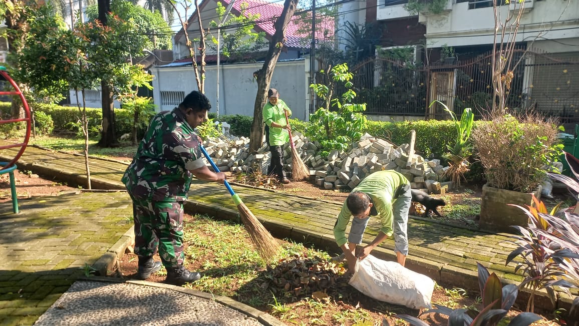 Rakyatmerdekanews.co.id, Jakarta – TNI bergerak bersama warga jaga kebersihan lingkungan Serma Besus lakukan Karya Bakti bersama warga., Jumat (21/11/2025).