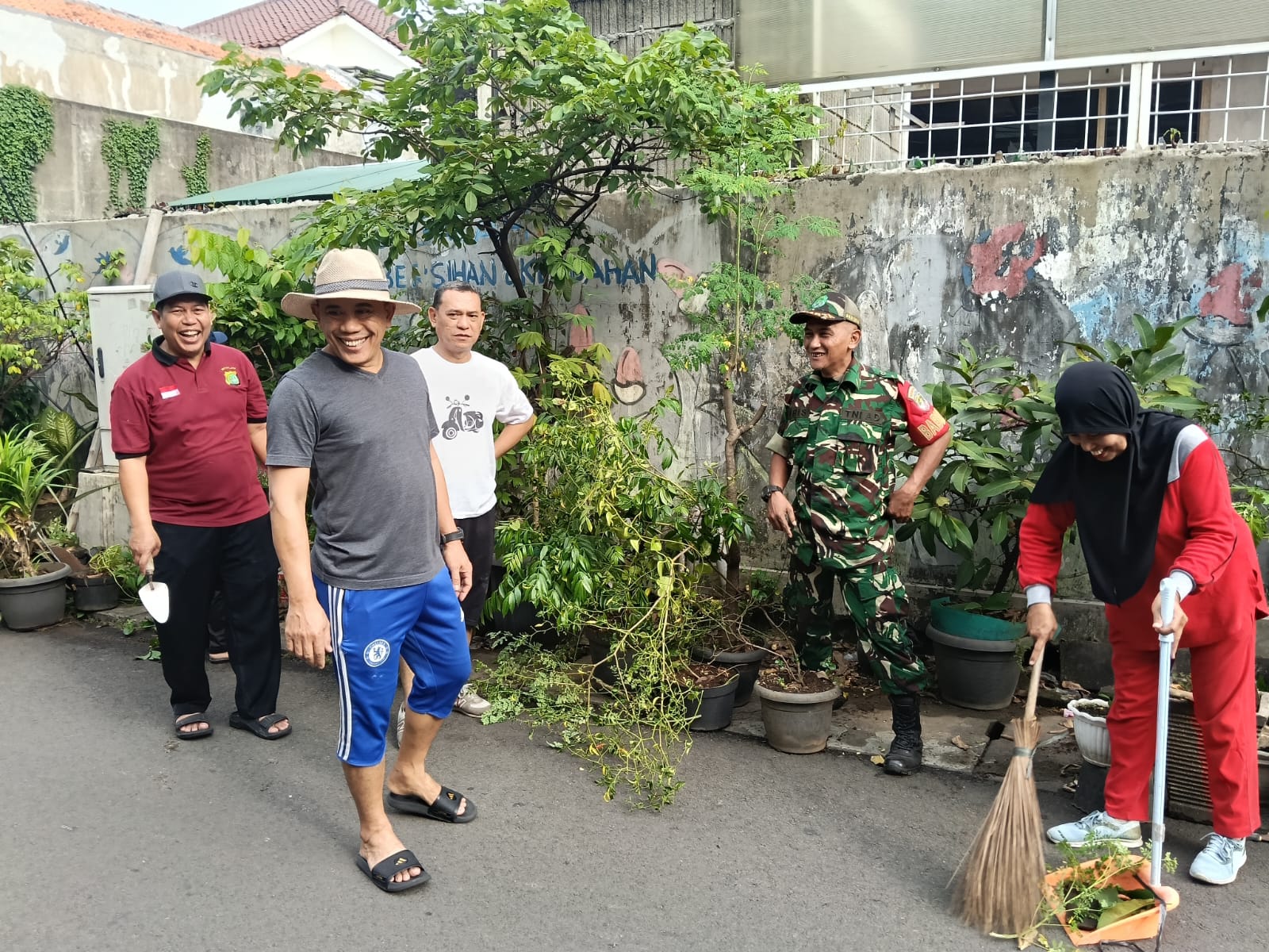 Dalam kegiatan Karya Bakti TNI Koramil 05 KJ bersama warga melibatkan sembilan personil terdiri dari Koramil 1 orang Babinsa Kelurahan Kebon Jeruk Koramil 05/KJ Sertu Aris Budiman dan 8 orang warga