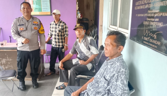 Rakyatmerdekanews.co.id, Tangerang – Bhabinkamtibmas Desa Curug Sangereng, Aipda A. Jakaria, S.H., melaksanakan kegiatan KRYD (Kegiatan Rutin yang Ditingkatkan), di Kantor Desa Curug Sangereng, Kecamatan Kelapa Dua, Kabupaten Tangerang. Dengan metode Door To Door System dan Cooling System sebagai upaya memperkuat komunikasi langsung dengan warga. 6/12