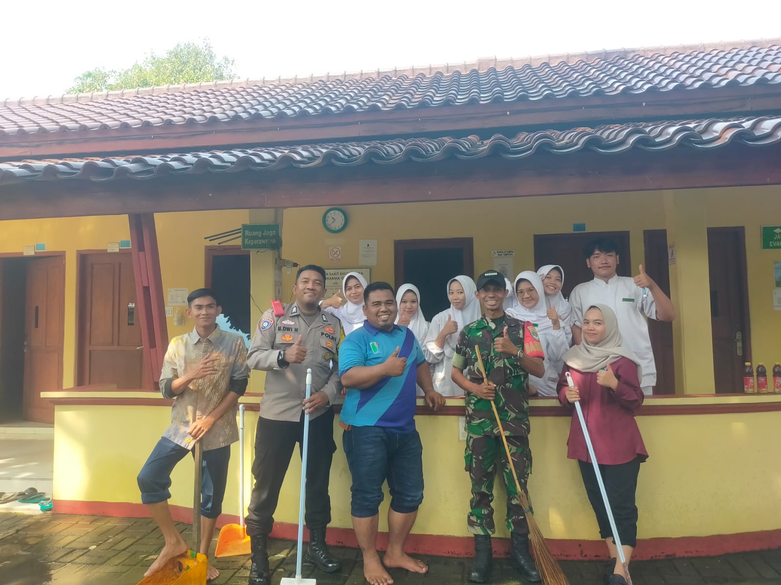 Dalam kegiatan tersebut, Brigadir Dwi Handoyo turut membantu proses pembersihan pasca banjir di lingkungan rumah sakit. Langkah ini dilakukan sebagai upaya pencegahan terhadap potensi wabah penyakit yang dapat timbul akibat genangan air dan sampah yang terbawa banjir.
