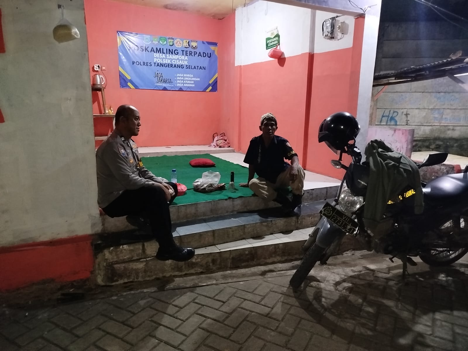 Rakyatmerdekanews.co.id, Tangerang – Bhabinkamtibmas Desa Sampora, Polsek Cisauk, Aiptu Budi Indarto melaksanakan kegiatan Cooling System sekaligus patroli sambang Pos Kamling Terpadu di wilayah Desa Sampora, Kecamatan Cisauk, Kabupaten Tangerang, pada Sabtu (1/11/2025) pukul 01.00 WIB.