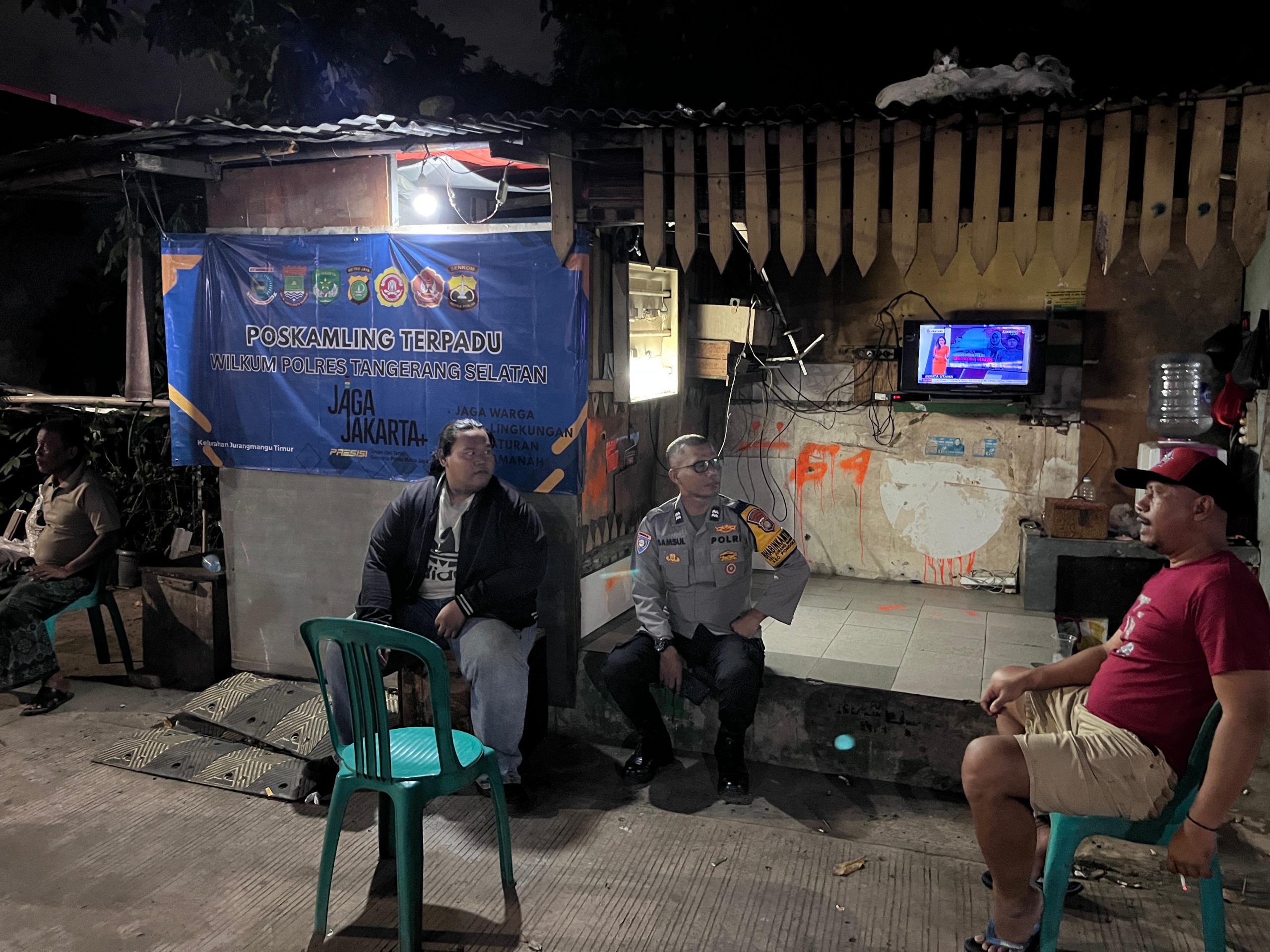 Rakyatmerdekanews.co.id, Tangerang Selatan – Bhabinkamtibmas Kelurahan Jurang Mangu Timur, Polsek Pondok Aren, Aiptu Samsul Hairudin melaksanakan kegiatan pengecekan Siskamling Terpadu di Jalan Raya Ceger RT 05 RW 02, Kelurahan Jurang Mangu Timur, Kecamatan Pondok Aren, Kota Tangerang Selatan, 13/11