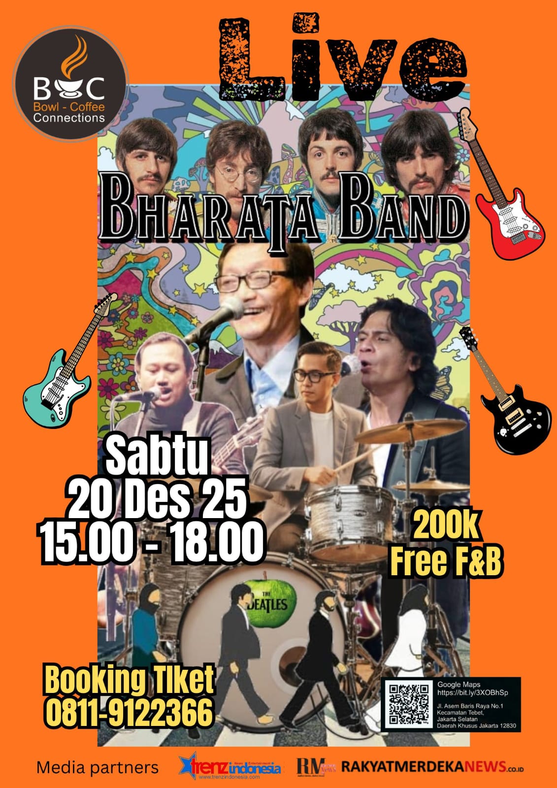 “Ayooo kita happy dengerin lagu lagu The Beatles yang dibawakan oleh Bharata Band,” ajak Mas Danang saat ditemui penulis di cafenya (7/12/2025).
