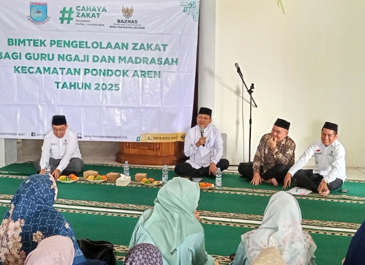 Rakyatmerdekanews.co.id, Tangsel — Gerakan literasi zakat di Kota Tangerang Selatan terus bergulir. Kali ini, giliran Kecamatan Pondok Aren yang menjadi tuan rumah kegiatan Sosialisasi dan Bimbingan Teknis (Bimtek) Pengelolaan Zakat bagi Guru Ngaji dan Guru Madrasah, Kegiatan ini merupakan inisiasi Badan Amil Zakat Nasional (BAZNAS) Kota Tangerang Selatan dalam upaya memperluas jangkauan edukasi zakat hingga ke akar rumput, Rabu (6/7/2025).