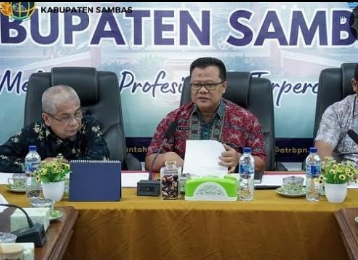 Acara di gelar kantor pertanahan Kabupaten Sambas di Aula kantor pertanahan kabupaten Sambas yang dipimpin oleh kepala kantor yang didampingi kepala bidang pengendalian dan penanganan sengketa Kanwil BPN Provinsi Kalimantan Barat beserta stafnya. Rapat ini dihadiri oleh perwakilan dari kantor wilayah, kantor wilayah, perangkat daerah, pihak perusahaan, pemerintah desa dan koperasi terkait, 6/11/2025.