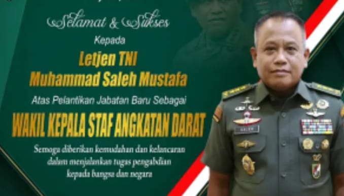 Rakyatmerdekanews.co.id, Jakarta – Panglima Tentara Nasional Indonesia (TNI) Jenderal Agus Subiyanto menunjuk Letjen Muhammad Saleh Mustafa menjadi Wakil Kepala Staf Angkatan Darat (Wakasad). Mutasi dan rotasi tersebut tertuang dalam Surat Keputusan Panglima TNI Nomor Kep/1102/VIII/2025 yang diterbitkan pada 15 Agustus 2025.