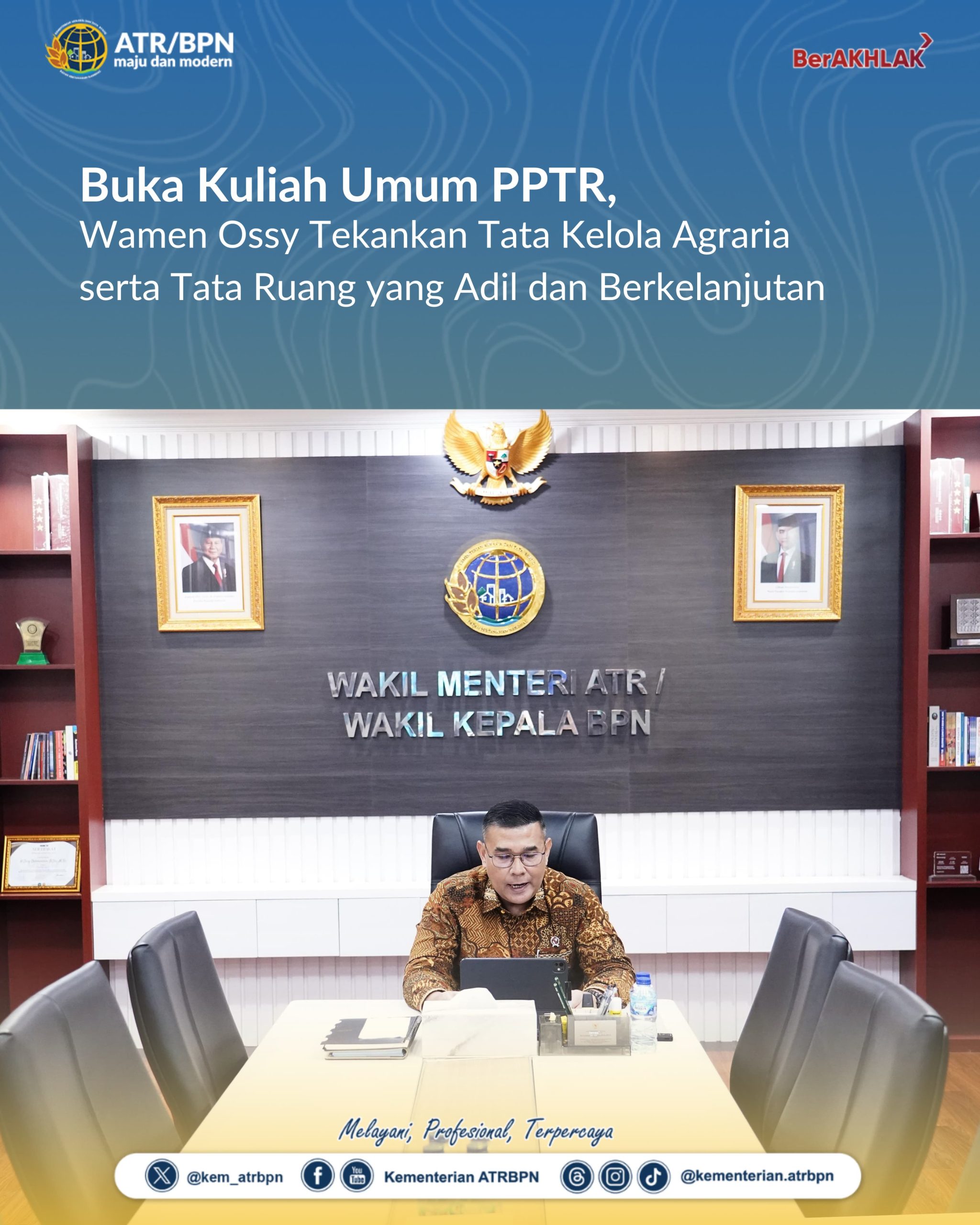 “Kita berkumpul dalam forum yang sangat penting. Ini adalah kesempatan berharga untuk berbagi pengetahuan, memperdalam pemahaman, dan memperkuat komitmen kita dalam mewujudkan pengelolaan agraria dan tata ruang yang adil dan berkelanjutan,” ungkap Wamen Ossy secara daring.