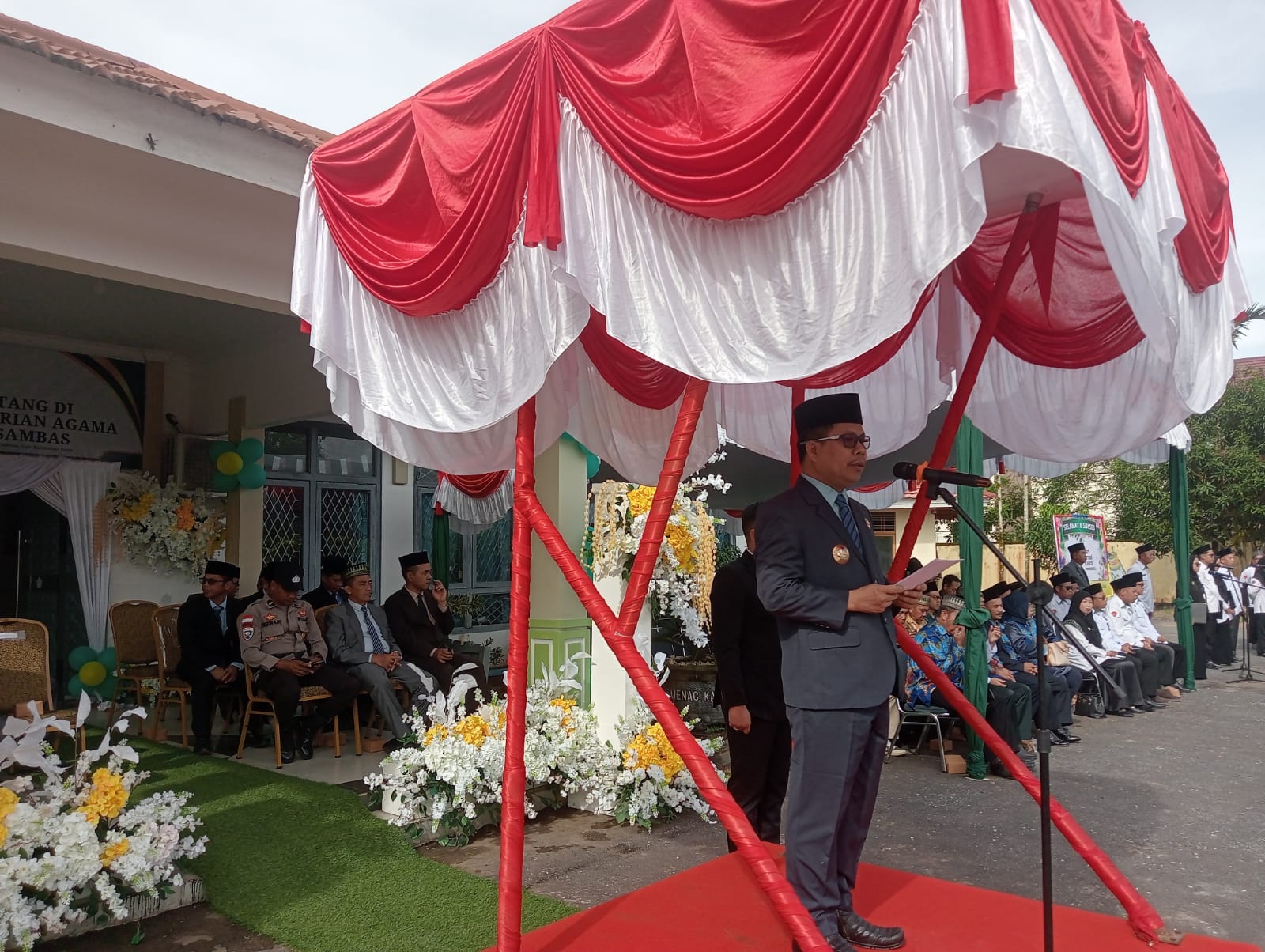 Upacara digelar di Halaman Kantor Kementerian Agama Kabupaten Sambas. Peringatan HAB ke-80 Kementerian Agama tahun ini mengusung tema “Umat Rukun dan Sinergi, Indonesia Damai dan Maju”.