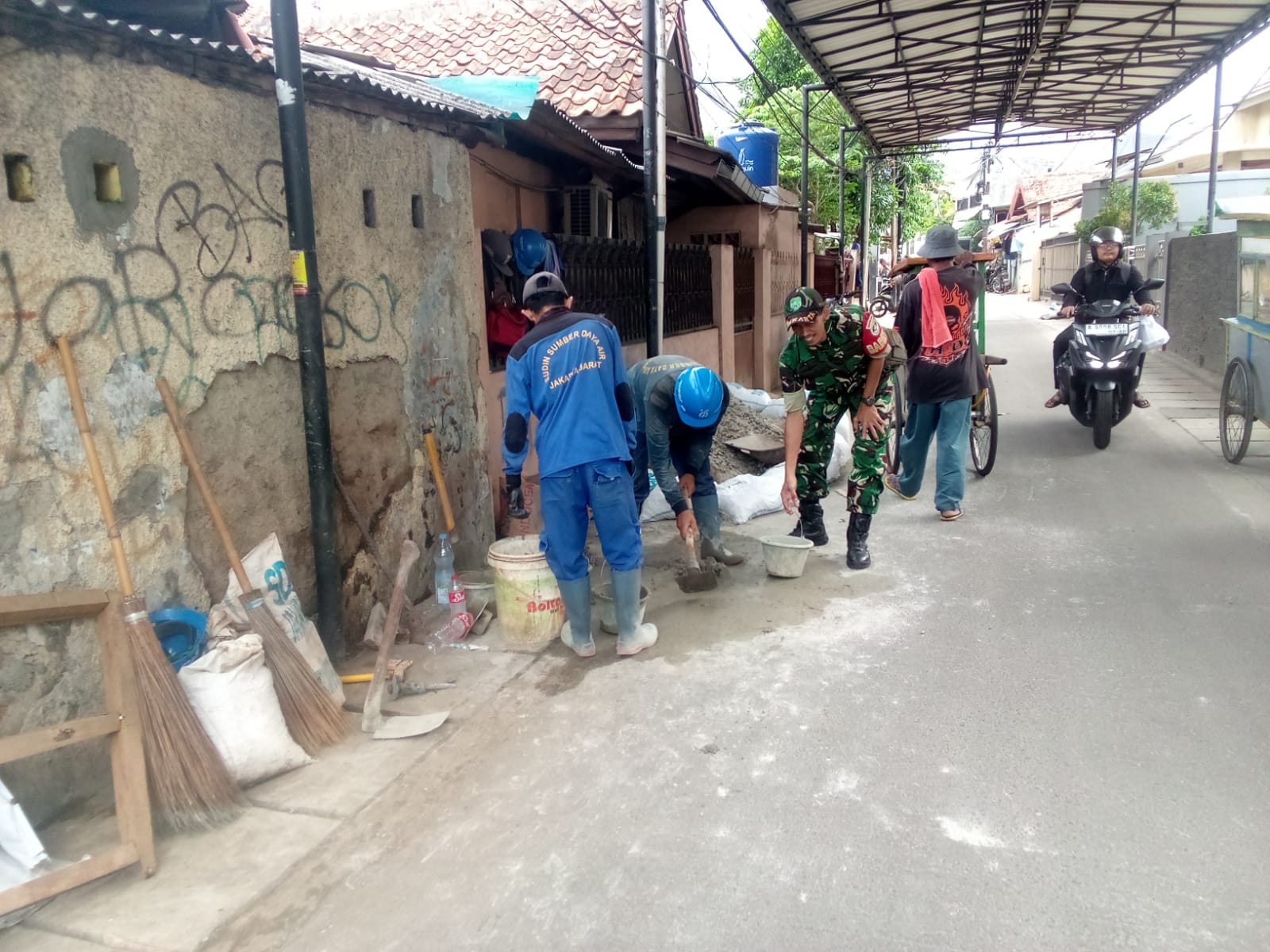 dalam karya bakti dilingkungan masyarakat yang dilakukan melibatkan 6 orang terdiri dari Babinsa Kelurahan Kebon Jeruk Serka Triyatno dan 4 orang pekerja SDA Kecamatan Kebon Jeruk pimpinan Saepulloh