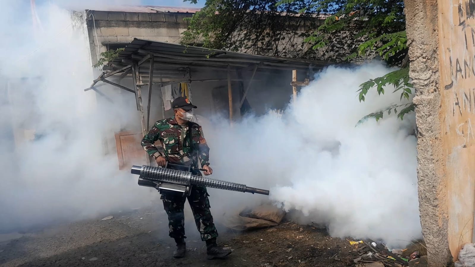 Cegah DBD, Koramil Babelan Lakukan Pendampingan Fogging di Wilayah Binaan