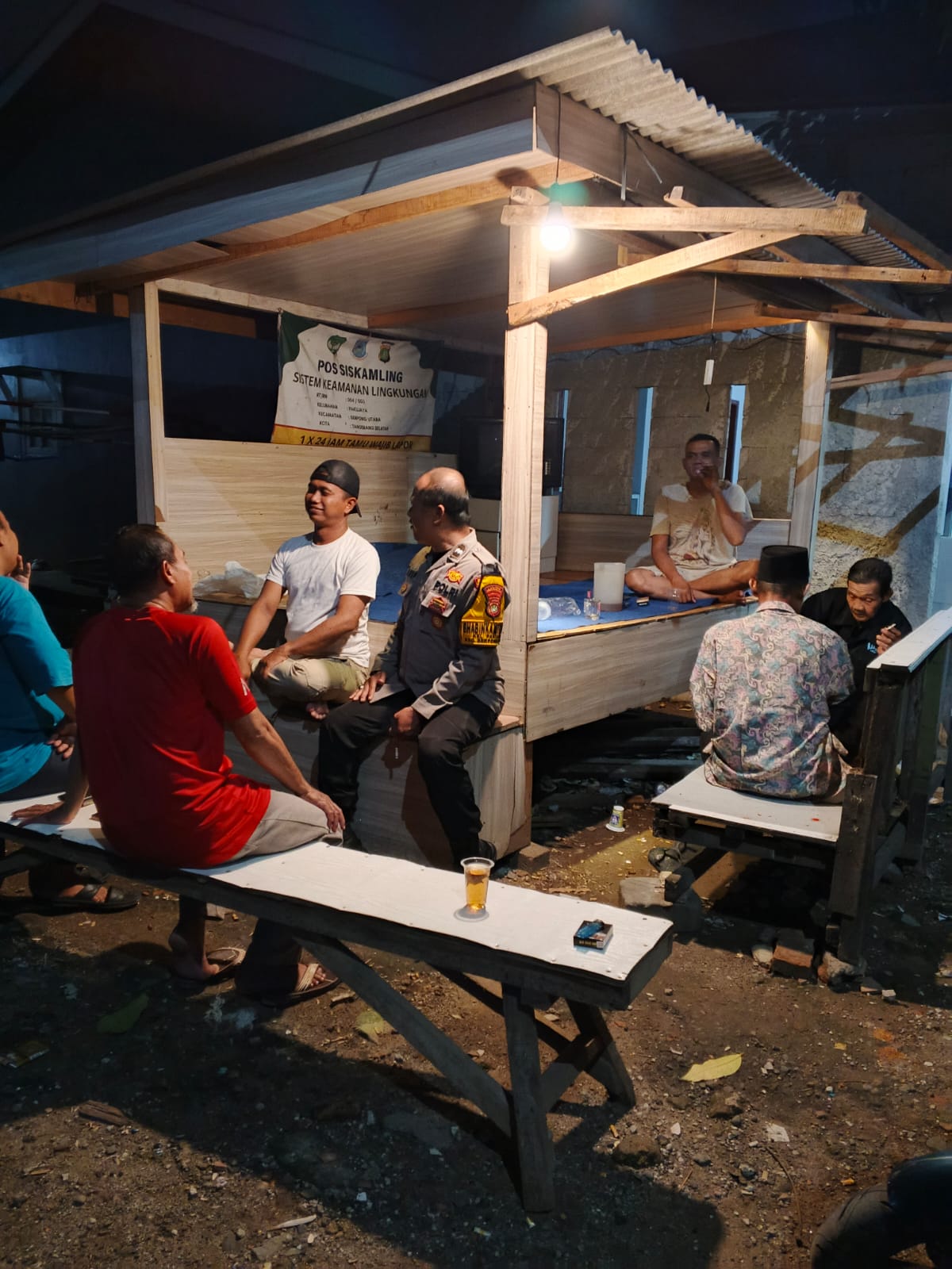 Kegiatan tersebut dihadiri oleh Bhabinkamtibmas Kelurahan Pakujaya, Aipda Arif Winarko, bersama Ketua Poskamling Terpadu sdr Goji, Ketua RT 004/003 Najat, serta warga setempat. Dalam kesempatan itu, petugas berinteraksi langsung dengan masyarakat yang tengah melaksanakan ronda malam di pos kamling.
