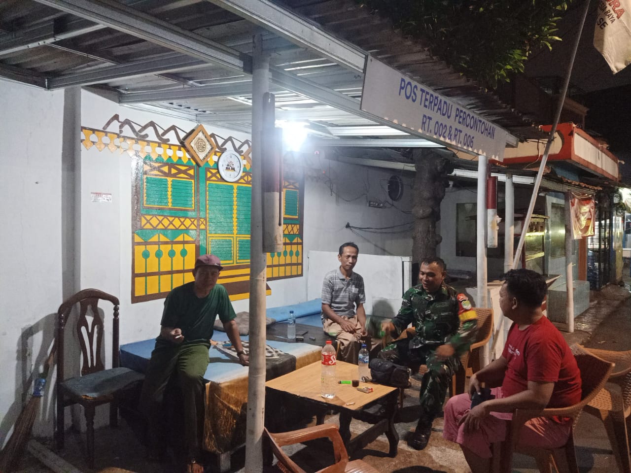 Babinsa juga menyampaikan himbauan agar warga yang melaksanakan jaga / siskamling rutin untuk melaksanakan patroli di lingkungan RT 002 dan 006 serta wilayah sekitarnya, dan untuk patroli dilaksanakan dengan body sytem sehingga apabila ada hal – hal yang mencurigakan akan diketahui dan segera dapat ditindak lanjuti.