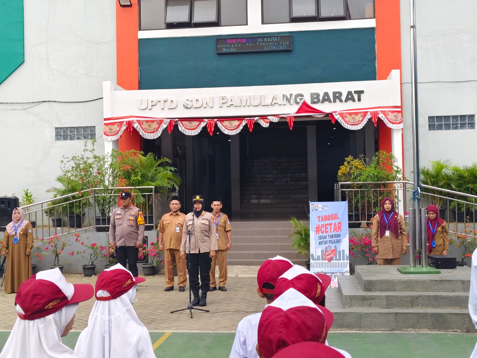 Rakyatmerdekanews.co.id, Tangsel – Dalam upaya mencegah kenakalan remaja dan kekerasan di kalangan pelajar, Unit Binmas Polsek Pamulang melaksanakan kegiatan penyuluhan bertajuk Program CETAR (Cegah Tawuran) di SDN Pamulang Barat, Kota Tangerang Selatan. Kegiatan ini berlangsung mulai pukul 08.00 WIB hingga selesai dan diikuti dengan antusias oleh siswa-siswi serta guru di lingkungan sekolah. 11/8