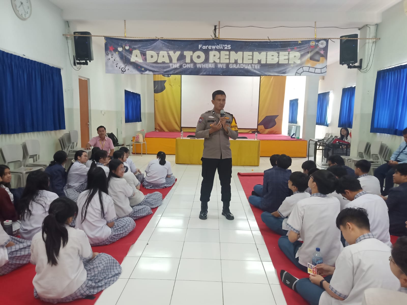 Rakyatmerdekanews.co.id, Tangerang – Dalam rangka menciptakan lingkungan sekolah yang aman dan bebas dari tindak kekerasan serta penyalahgunaan narkoba, Unit Binmas Polsek Curug kembali menggelar program “Police Go To School” melalui kegiatan pembinaan preemtif bertajuk CETAR (Cegah Tawuran antar Pelajar). Kegiatan ini dilaksanakan pada Jumat, 13 Juni 2025, di SMA Atisa Dipamkara, Kelurahan Binong, Kecamatan Curug, Kabupaten Tangerang. Melalui metode tatap muka, sekitar 100 siswa mengikuti sosialisasi bertema “Antisipasi Tawuran Antar Pelajar dan Penyalahgunaan Narkotika”. (13/06)
