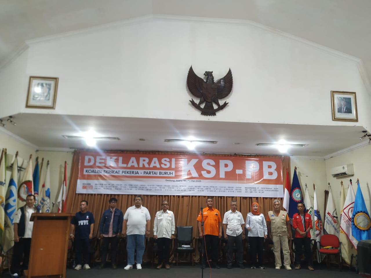 Oleh karena itu, pada hari ini, 20 Mei 2025 di Gedung Juang 45 Jakarta telah dideklarasikan koalisi serikat pekerja, koalisi organisasi kerakyatan, dan Partai Buruh yang berhimpun dalam satu koalisi besar bernama Koalisi Serikat Pekerja — Partai Buruh yang disingkat KSP-PB. Koalisi ini terdiri dari konfederasi serikat pekerja terbesar, mayoritas federasi serikat pekerja di tingkat nasional, organisasi petani, organisasi guru dan tenaga honorer, organisasi nelayan, organisasi tenaga medis, organisasi media dan konten kreator, organisasi transportasi online (gojek, grab, maxime, dil), serikat pekerja transportasi, organisasi pekerja rumah tangga, organisasi buruh migran, organisasi miskin kota dan pekerja informal, organisasi pelaut, dan organisasi kerakyatan lainnya.