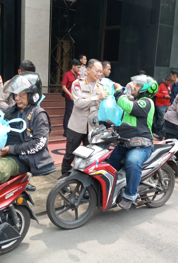 Rakyatmerdekanews.co.id, Jakarta – Polda Metro Jaya kembali menggelar kegiatan sosial bertajuk Jumat Berkah dengan membagikan sembako plus voucher belanja kepada para pengemudi ojek online (ojol) .