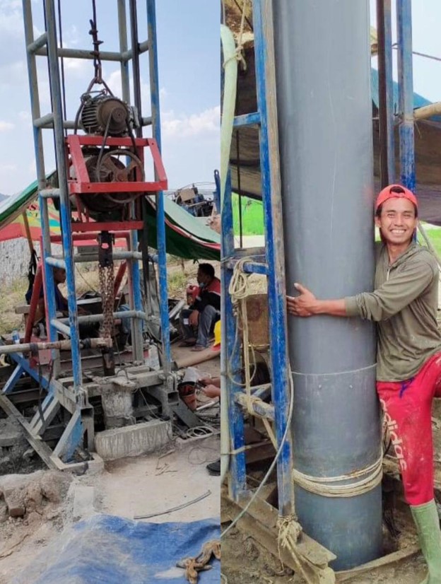 “Alhamdulillah, minggu kemarin dan minggu ini semua titik sudah mulai dikerjakan. Targetnya selesai pada Desember 2025. Setiap titik sumur terdiri dari tiga kegiatan utama, yaitu pengeboran dengan kedalaman 105–120 meter, pembangunan infrastruktur berupa gedung dan pagar di lahan 9×9 meter, serta jaringan irigasi melalui pemasangan pipa peralon sepanjang 1 kilometer,” jelasnya.