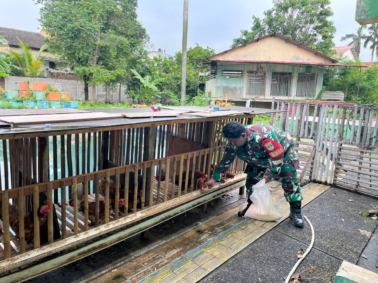 Kegiatan yang telah dilakukan oleh Babinsa berupa, pengecekan kondisi ayam, memberi makan dan minum ayam, mengambil telur, membersihkan kandang.
