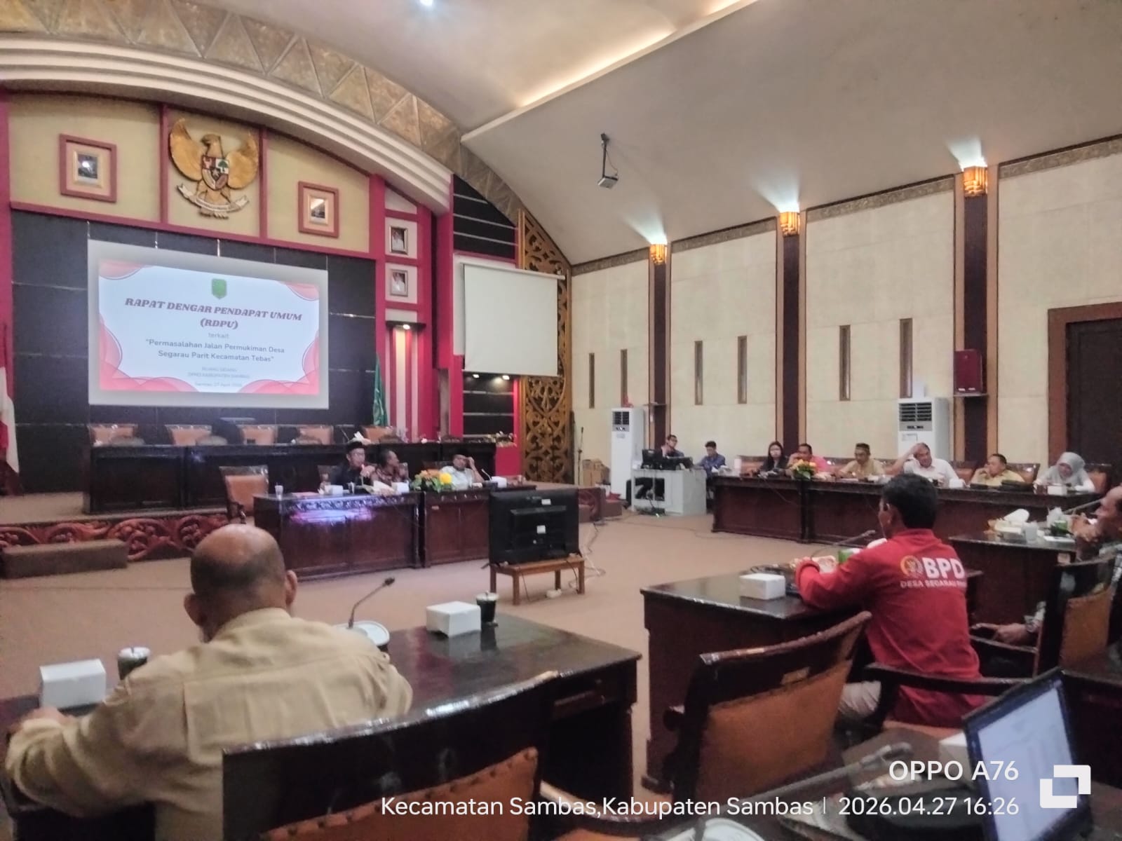 Rakyatmerdekanews.co.id, Sambas kalbar – DPRD Kabupaten Sambas gelar Rapat Dengar Pendapat Umum (RDPU) bersama Pemerintah desa Segarau Parit kecamatan Tebas dan masyarakatnya bersama pihak Pemilik sertifikat keluarga Liu Ka Sang, terkait konflik antara lahan hak milik dengan lahan jalan fasilitas umum.