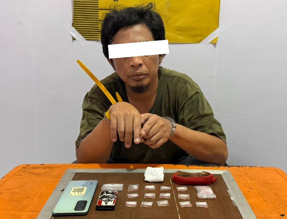 Petugas berhasil menemukan barang bukti yang bikin geleng-geleng kepala. Di dalam sebuah dompet merah (yang warnanya seberani nyali pelakunya), ditemukan 13 paket kecil dan 1 paket sedang sabu. Tak hanya itu, ada juga selembar tisu putih yang isinya bukan buat lap keringat, tapi kristal haram seberat 4,70 gram.
