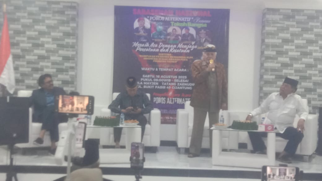 Rakyatmerdekanews.co.id, Jakarta – Gerakan Poros Alternatif menggelar Sarasehan Nasional bertajuk “Mampukah Prabowo Mengembalikan Indonesia Sesuai Amanah Para Founding Father?” di Aula Mayjen TNI (Purn) Tatang Zaenudin, Jakarta. dihadiri sejumlah tokoh nasional, termasuk Mayjen TNI (Purn) Tatang Zaenudin dan Mayjen TNI (Purn) Kivlan Zen, serta berbagai tamu undangan dari kalangan masyarakat sipil dan aktivis.