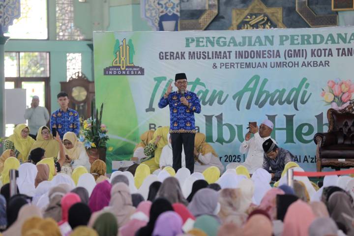 Dari seorang ibulah lahir generasi berakhlak mulia dan berilmu,” ujar Sachrudin, saat membuka Pengajian Perdana Gerak Muslimat Indonesia (GMI) Kota Tangerang.