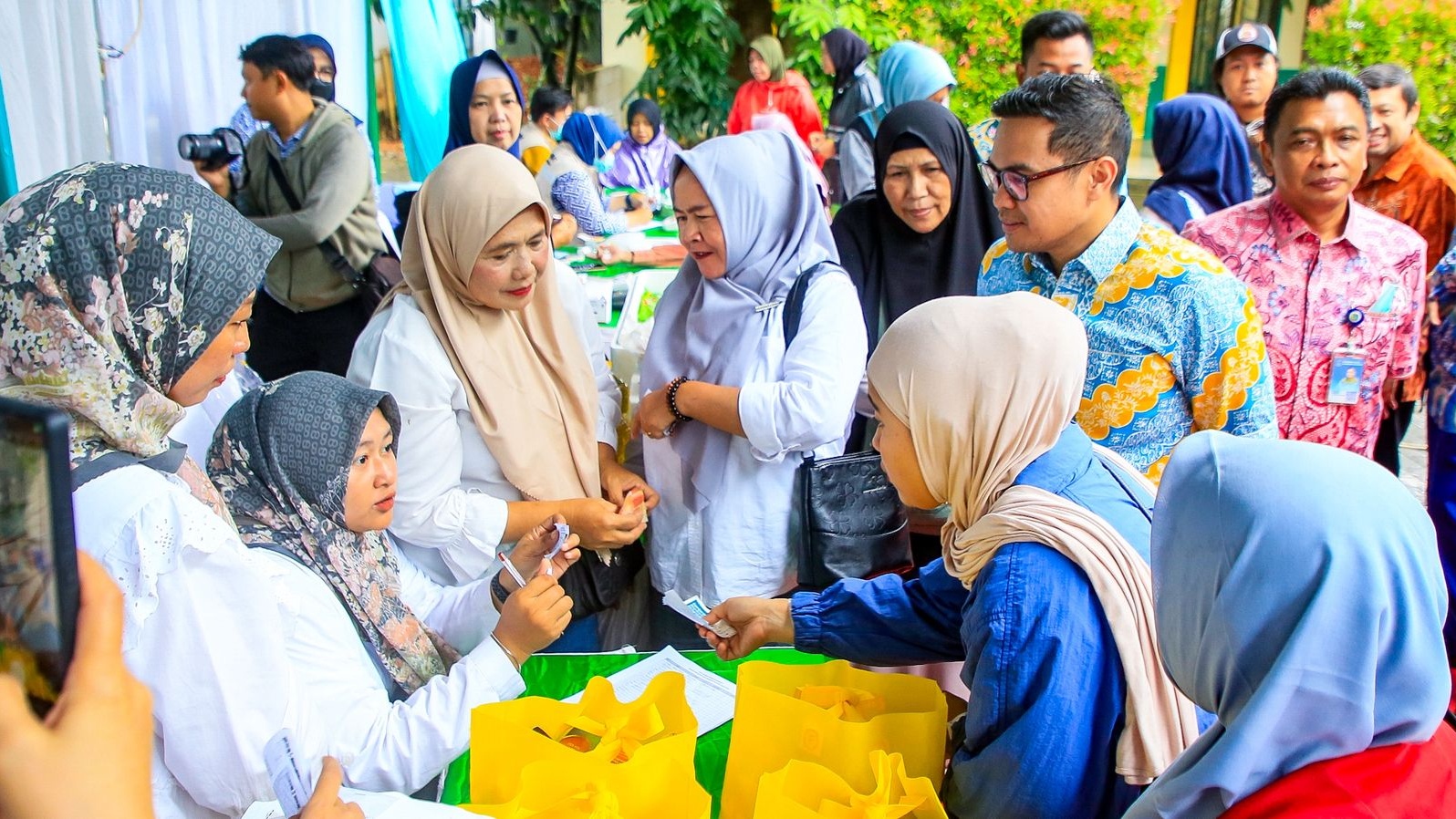 Masyarakat hadir dengan antusiasme tinggi untuk berbelanja bahan pokok dengan harga yang murah.