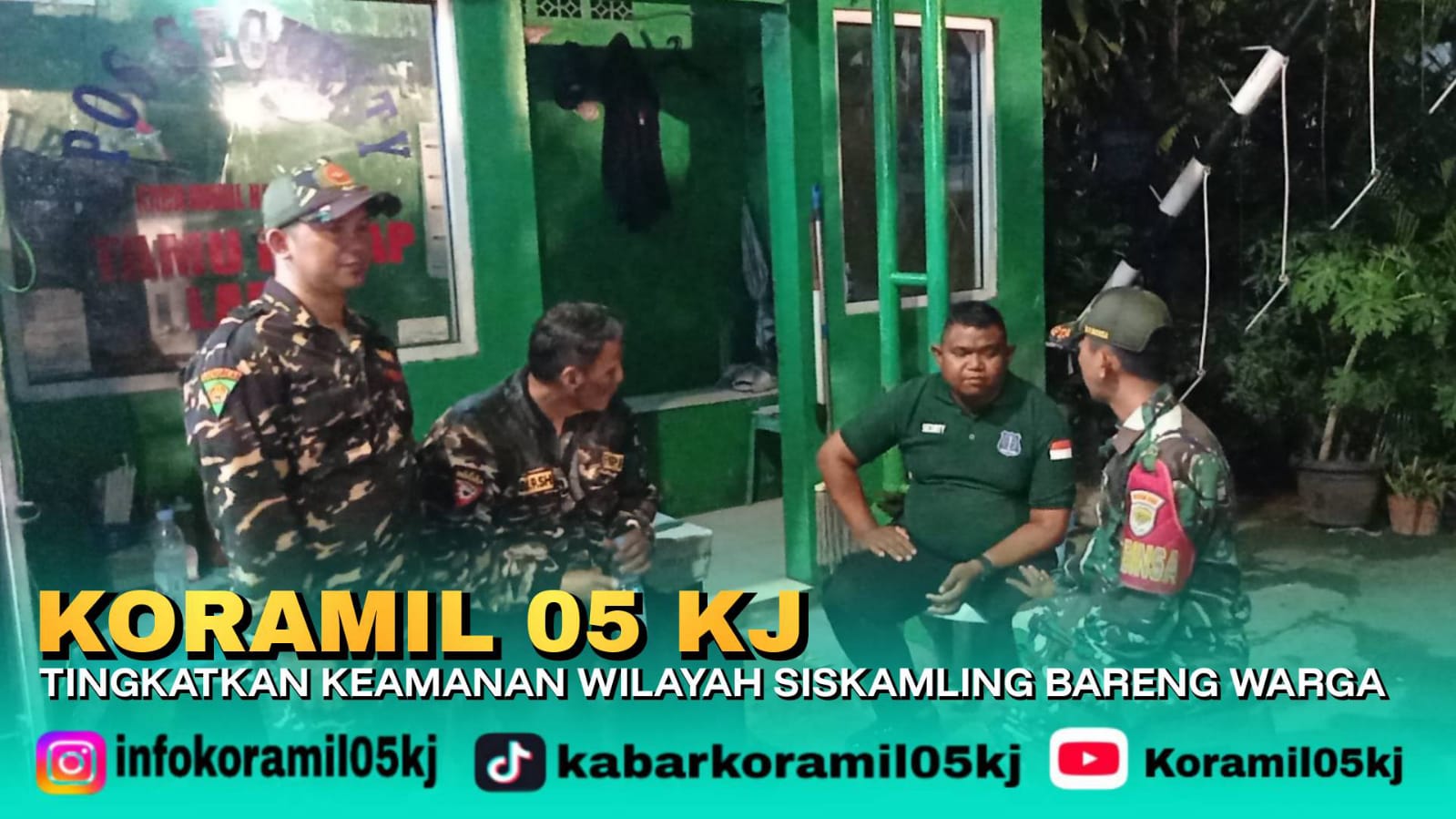 Anggota Koramil 05/Kj Babinsa Kelurahan Sukabumi Utara Sertu Hadi Ermanto juga memberikan himbauan kepda penjaga keamanan perumahan agar selalu akukan penjagaan dengan penuh rasa tanggung jawab dan saling menjaga keamanan Siskamling agar tercipta situasi aman kondusif dan membawa alat bantu komunikasi dan alat pemukul/ pentungan serta body sistem.