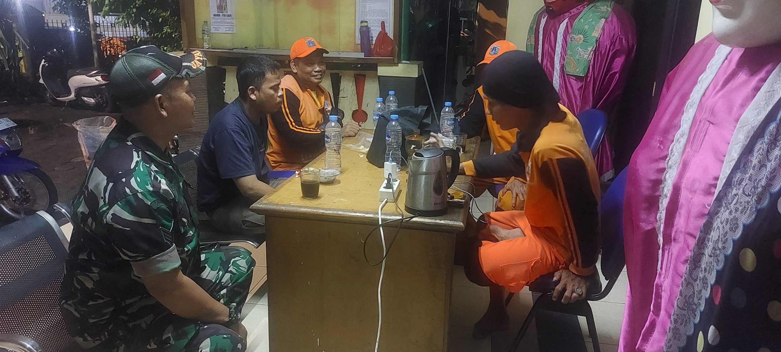 Siskamling/Pam Swakarsa bersama anggota PPSU di Halaman Kelurahan  Kebon Jeruk, Jl. Kebon Jeruk Baru, Rt 008/ 011 Kel. Kebon Jeruk, Kec Kebon
