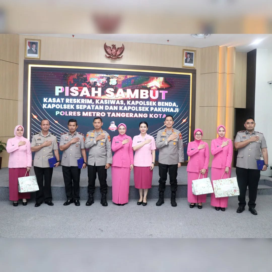Rakyatmerdekanews.co.id, Kota Tangerang – Suasana khidmat dan penuh kebersamaan menyelimuti jajaran Polres Metro Tangerang Kota, Polda Metro Jaya, pada Sabtu (7/6/2025), saat prosesi Serah Terima Jabatan (Sertijab) bagi lima perwira menengah dilangsungkan. Pergantian jabatan itu mencakup dua pejabat utama (PJU) dan tiga kapolsek jajaran, sebagai bagian dari dinamika penyegaran organisasi kepolisian.