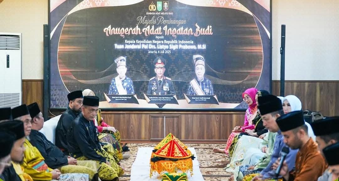 Rakyatmerdekanews.co.id, Jakarta – Kepala Kepolisian Republik Indonesia (Kapolri), Jenderal Pol. Drs. Listyo Sigit Prabowo, (tautan tidak tersedia), baru-baru ini menerima Anugerah Adat Ingatan Budi dari Lembaga Adat Melayu Riau (LAMR) Provinsi Riau. Penganugerahan ini dilakukan dalam sebuah acara khusus di kediamannya di Jakarta pada Jumat (4/7/25).