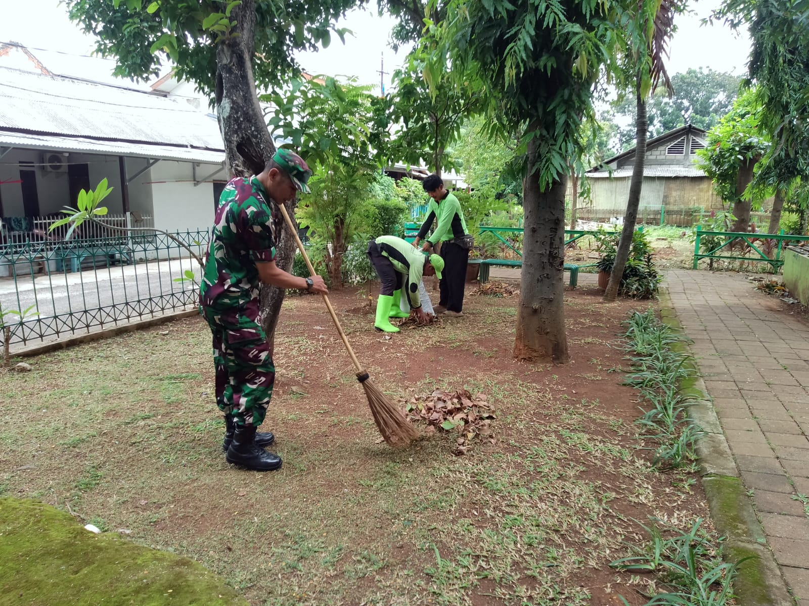 Sertu Firman bersama anggota PJLP Taman Kota melaksanakan Karya Bakti pembersihan lingkungan, bertempat di Taman komplek Perumahan Sederhana Kodam Jaya di jln Melur RT 01, RW 06 Kelurahan Kebon Jeruk Kecamatan Kebon Jeruk, Jakarta Barat.