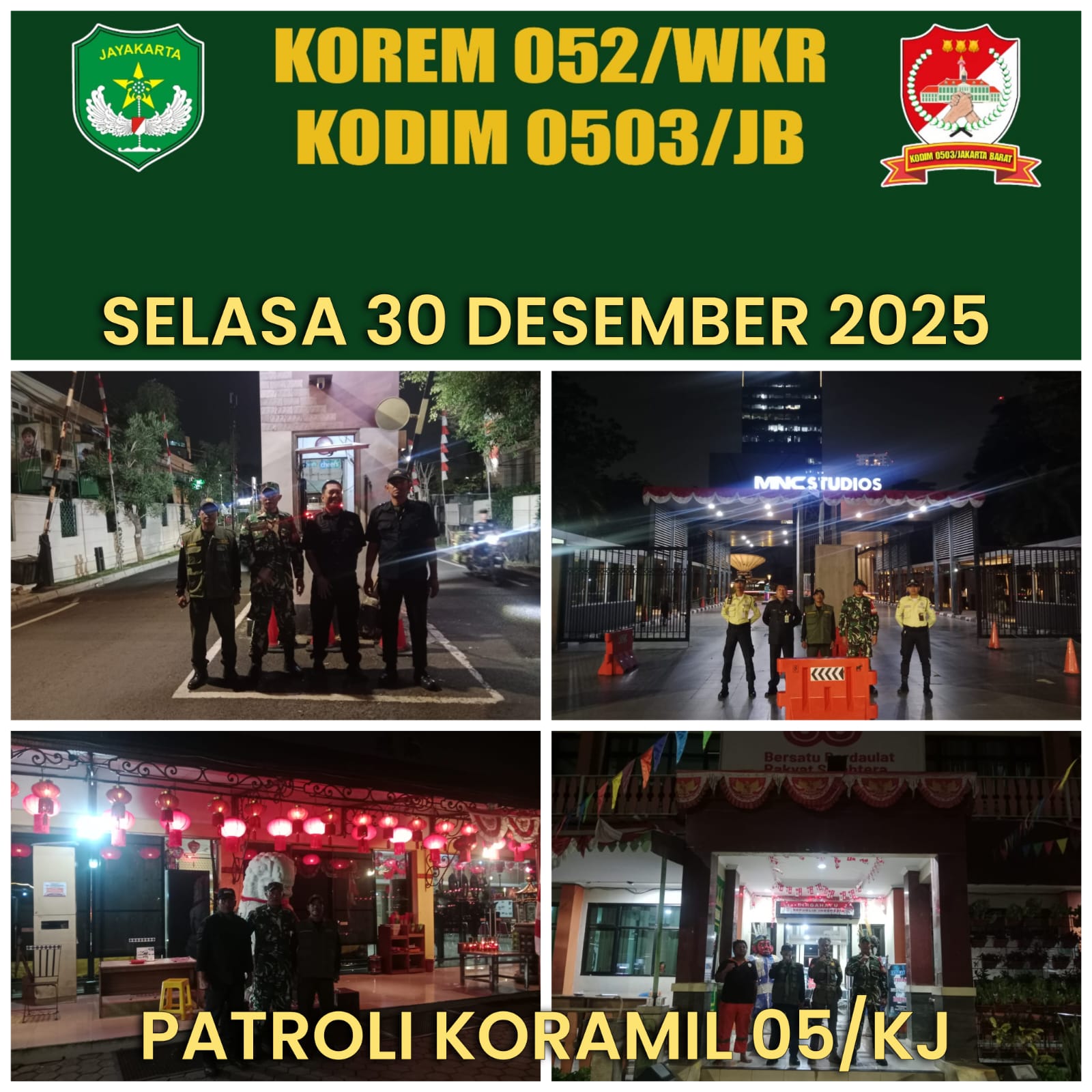 Anggota TNI melalui Babinsa meningkatkan keamanan wilayah jelang pergantian tahun, Koramil 05/KJ melakukan kegiatan patroli keliling wilayah., Selasa (30/12/2025).