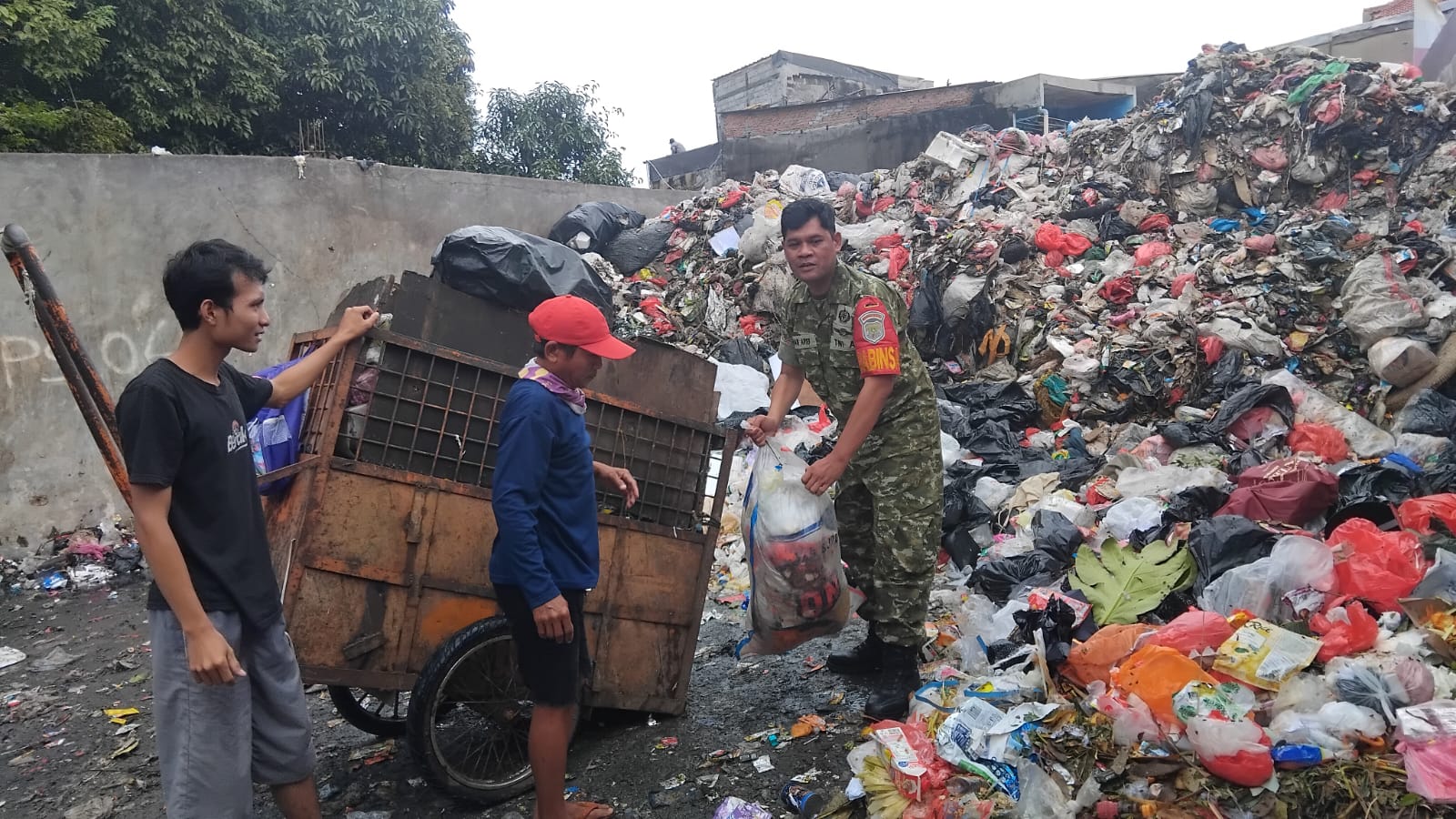 Kegiatan Satgas Sampah dan Karya Bakti TNI terhadap penanganan darurat sampah bertempat Jl. Komplek green garden, RT 005 RW 04, Kel. Kedoya Utara, Kec Kebon Jeruk Jakarta Barat