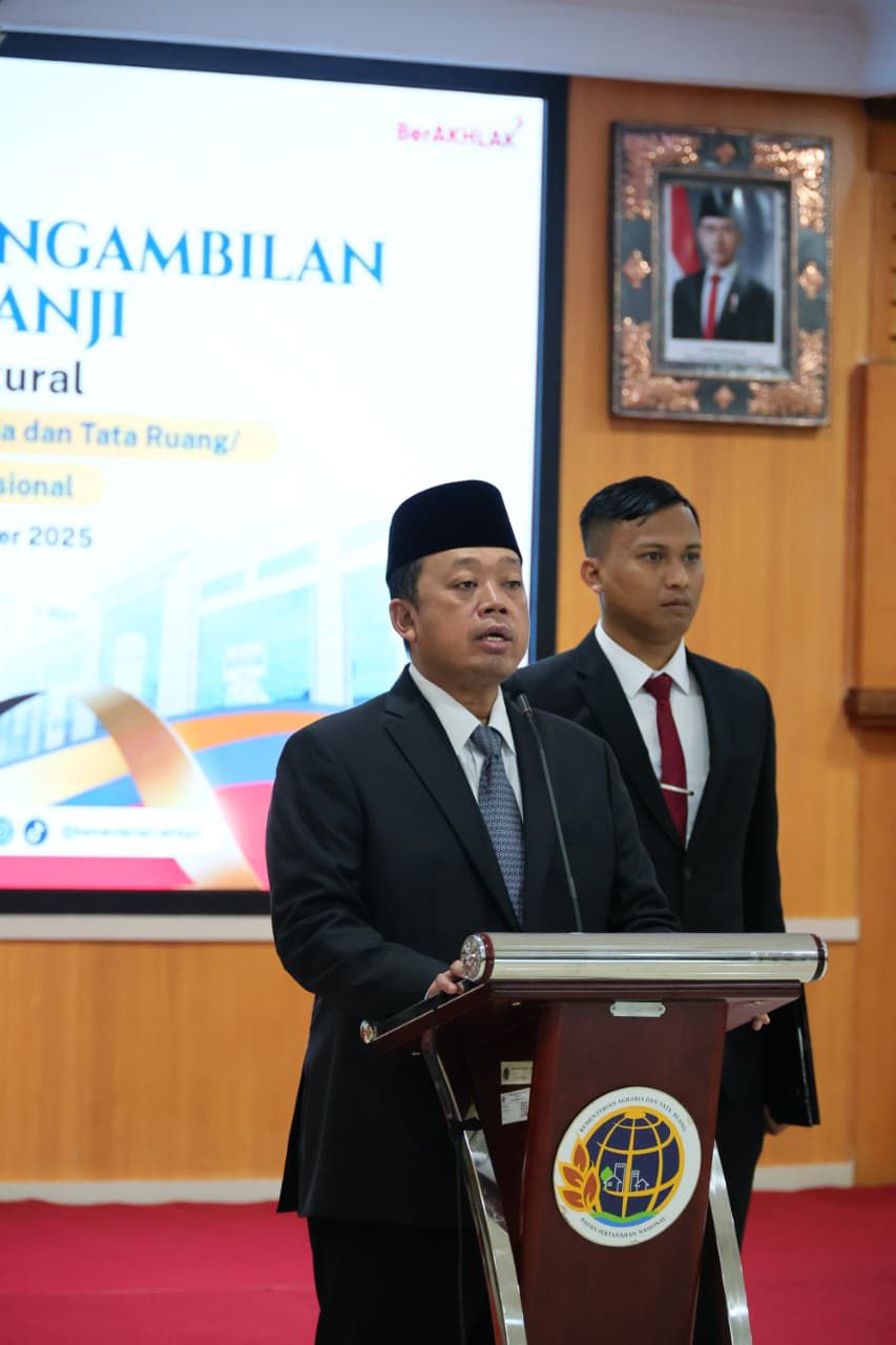 Rakyatmerdekanews.co.id, Semarang – Menteri Agraria dan Tata Ruang/Kepala Badan Pertanahan Nasional (ATR/BPN), Nusron Wahid, melantik 24 Pejabat Struktural di lingkungan Kementerian ATR/BPN, Jumat (12/09/2025). Para pejabat terlantik diingatkan oleh Menteri Nusron untuk menjalani tugas melayani dengan hati dan mendedikasikan diri kepada masyarakat.