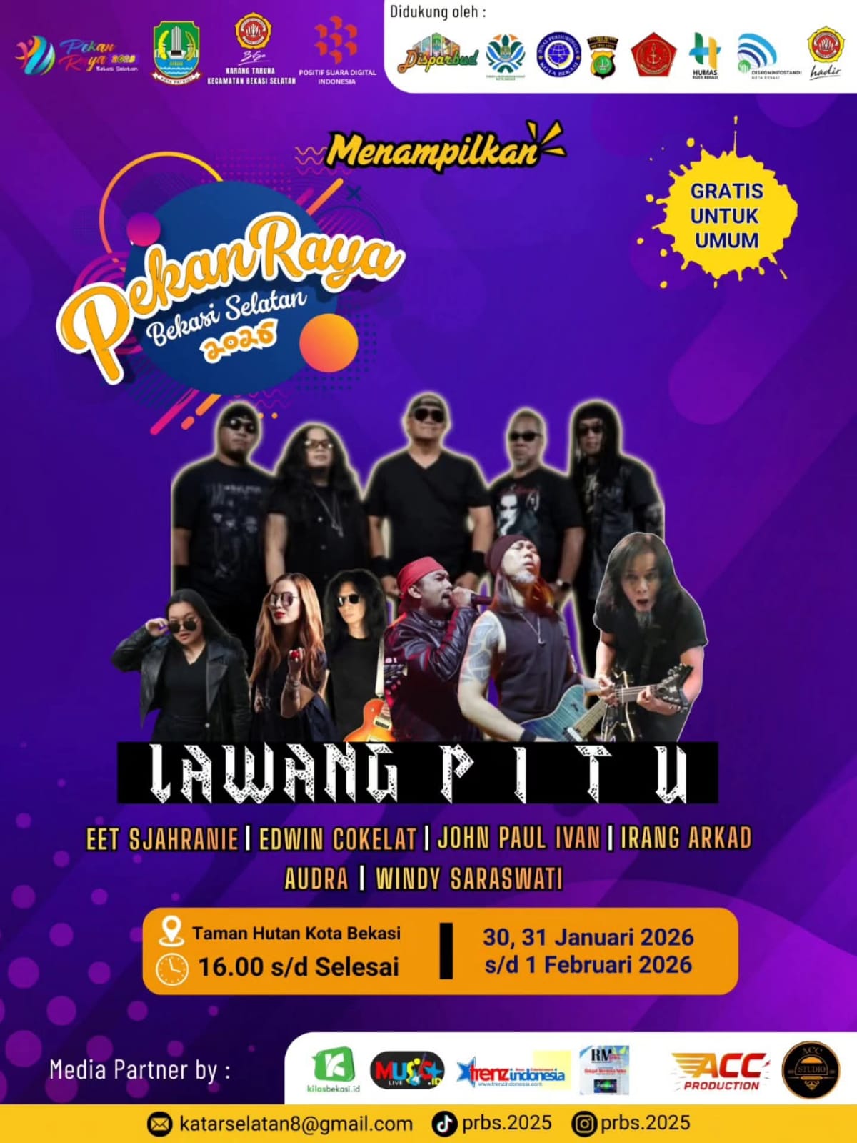 Rakyatmerdekanews.co.id, Bekasi – Group band cadas LAWANG PITU bakal tampil dengan seabrek bintang rock Indonesia di acara Pekan Raya Bekasi Selatan 2026. Main di kandangnya sendiri, dipastikan mereka akan tampil all out untuk menghibur warga Bekasi dan sekitarnya.