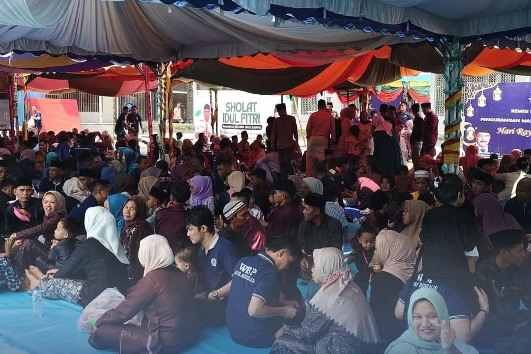 Pemandangan menyentuh terlihat di setiap sudut lapangan. Isak tangis pecah saat para warga binaan akhirnya bisa memeluk orang tua, istri, dan anak-anak mereka. Di atas tikar yang digelar, hidangan khas lebaran seperti ketupat dan rendang disantap bersama, seolah menghapus sekat jeruji besi yang memisahkan mereka selama ini.