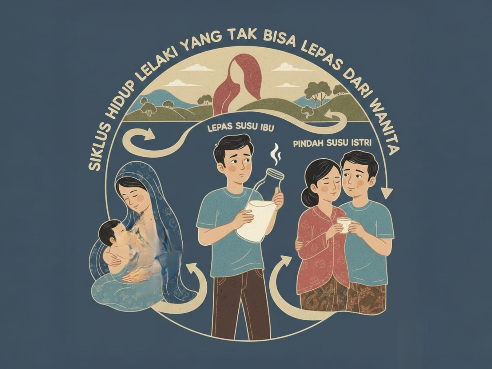 Namun, roda waktu berputar. Ketika akad telah diucap, terjadilah “perpindahan sumber kehidupan”. Secara simbolis, lelaki yang tadinya menyusu pada Ibu, kini berpindah “menyusu” pada kasih sayang Istri. Pangkuan Ibu yang hangat kini berganti dengan pelukan Istri sebagai pelabuhan terakhir.