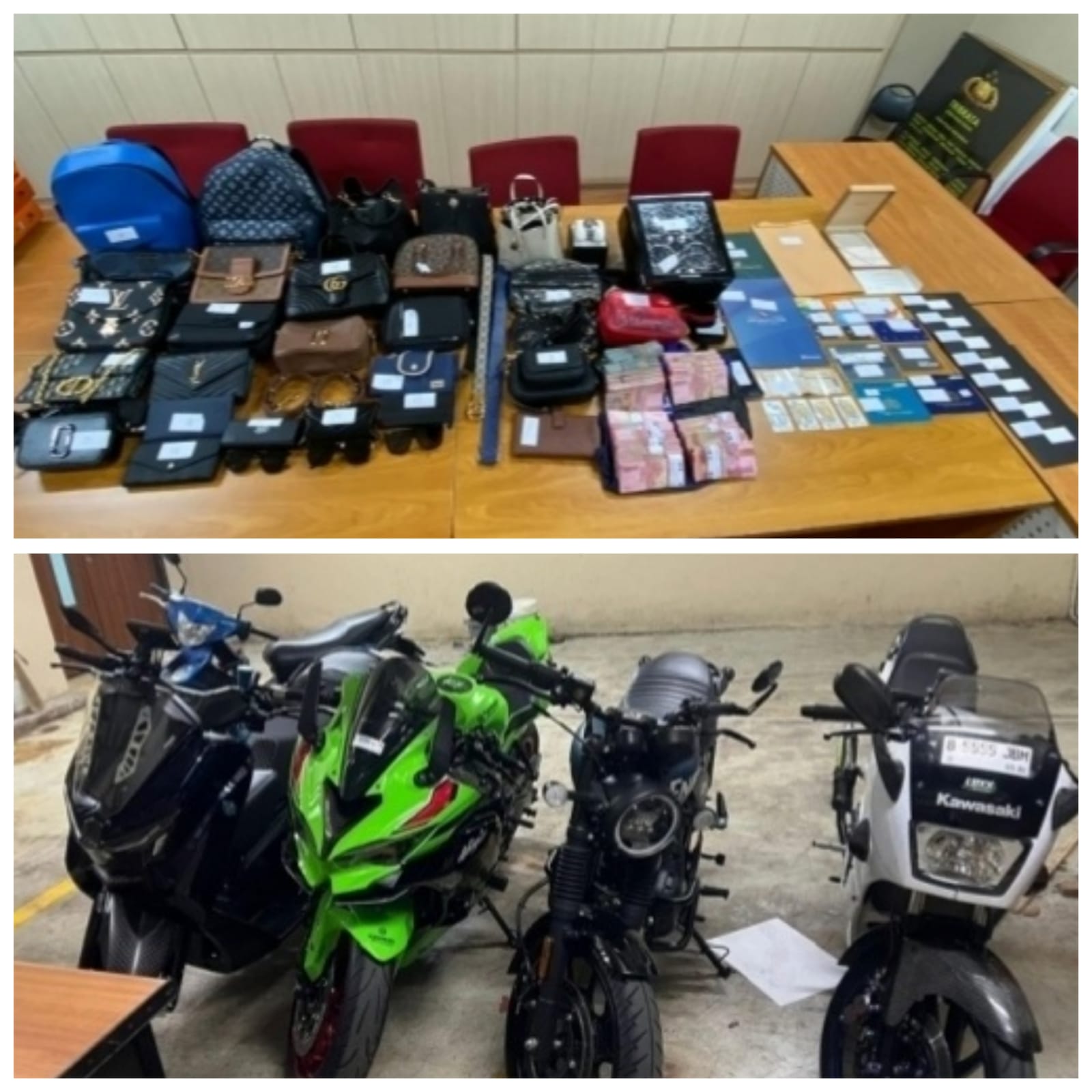 Dalam pengungkapan ini, penyidik menyita berbagai barang bukti bernilai ekonomi tinggi. Di antaranya uang tunai Rp202 juta, sejumlah kendaraan bermotor, logam mulia produksi PT Antam, serta perhiasan emas bernilai ratusan juta rupiah.