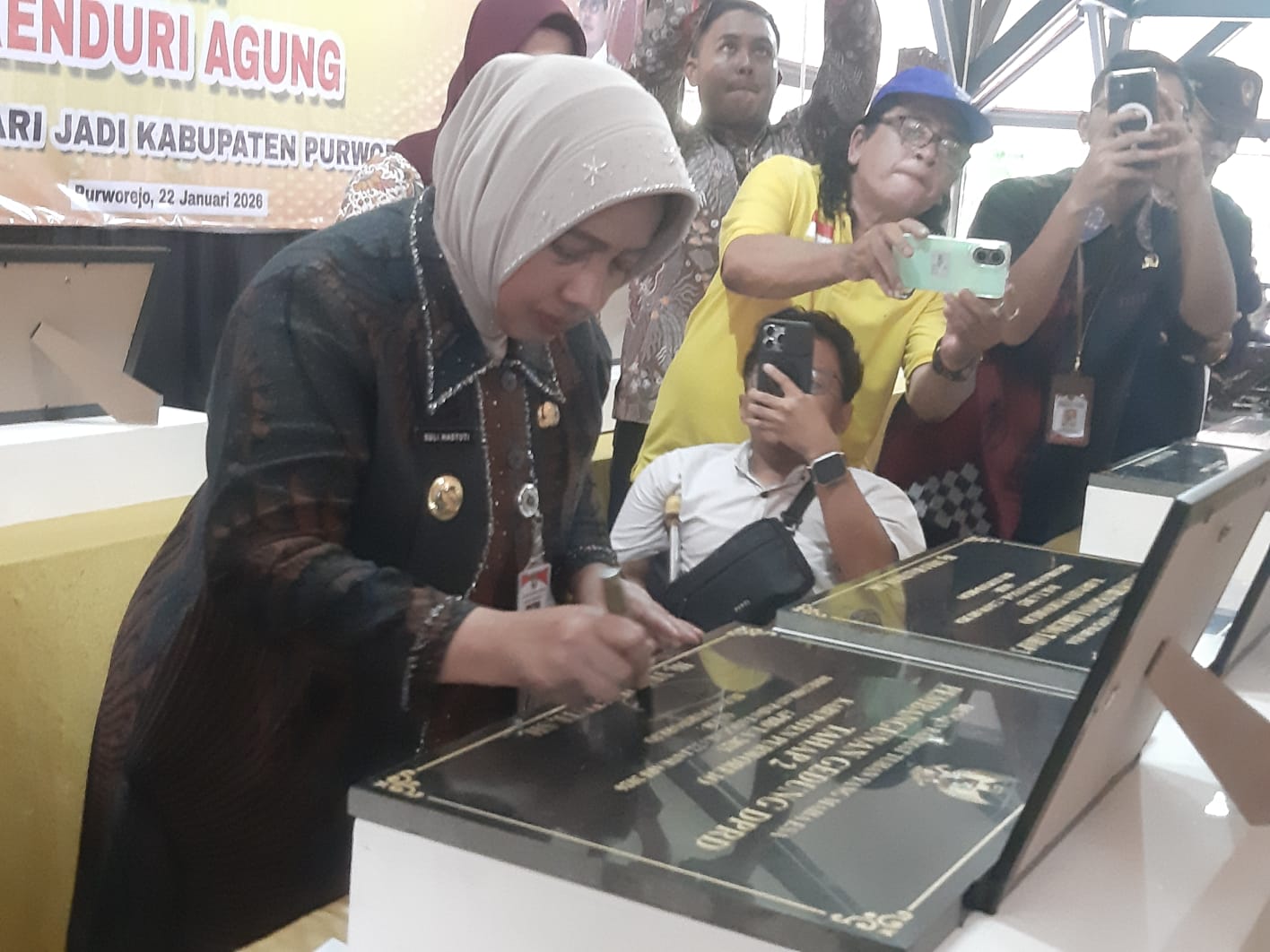 Rakyatmerdekanews.co.id, Purworejo – Mengawali rangkaian kegiatan peringatan Hari Jadi Purworejo ke-195, Bupati Purworejo Yuli Hastuti melakukan peresmian 24 proyek tahun anggaran 2025. Kegiatan itu dirangkai dengan Kenduri Agung yang dilaksanakan di Pendopo rumah dinas Bupati Purworejo, Kamis (22/1/2026)