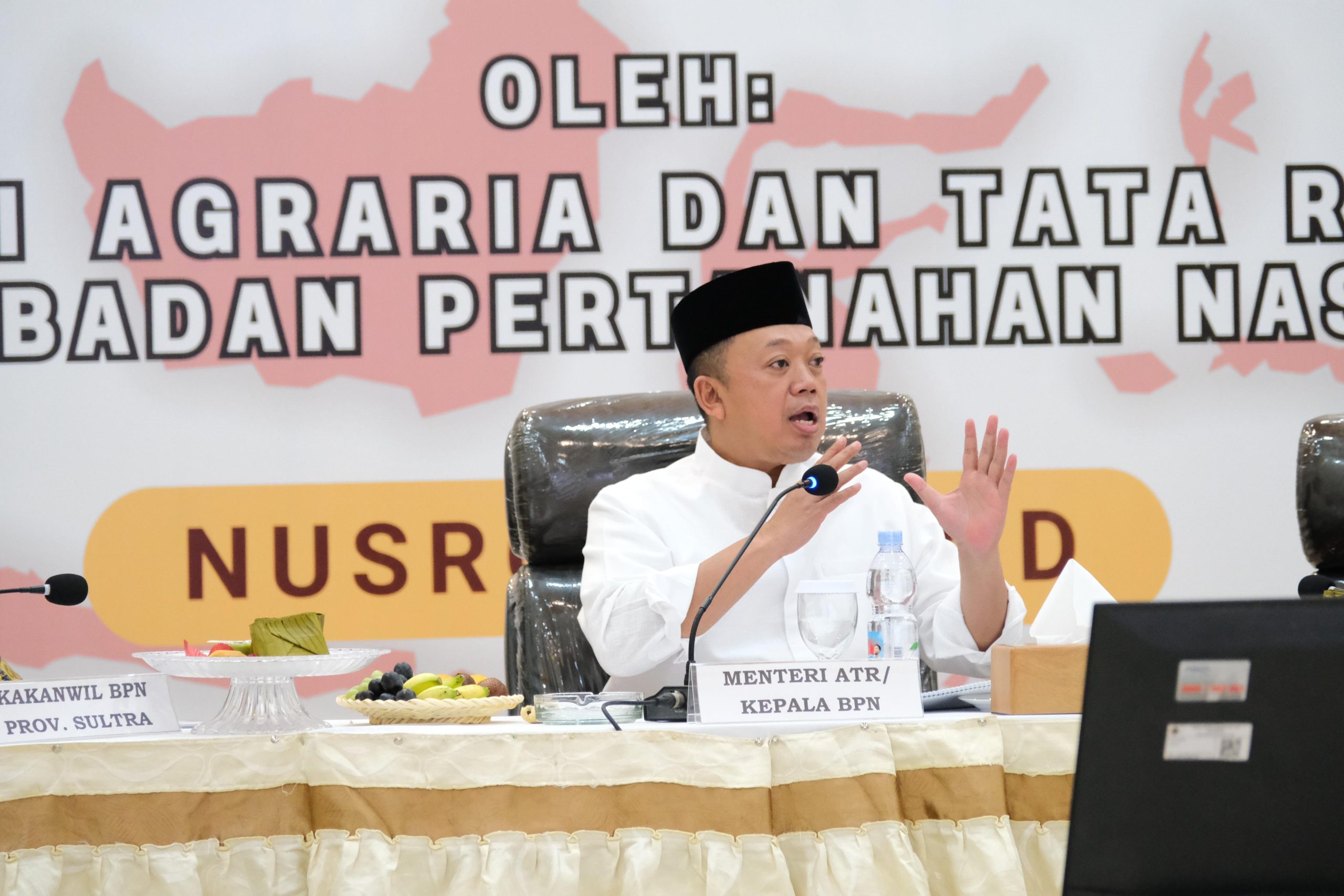 “Saya minta tolong, dalam validasi data pertanahan ini harus ada strategi khusus untuk penyelesaiannya. Mumpung saat ini kita sedang bermigrasi ke sistem digital, ini momentum yang harus dimanfaatkan,” tegas Menteri Nusron saat memberikan pengarahan di Kanwil BPN Provinsi Sulawesi Tenggara, Rabu (28/05/2025).